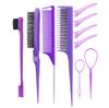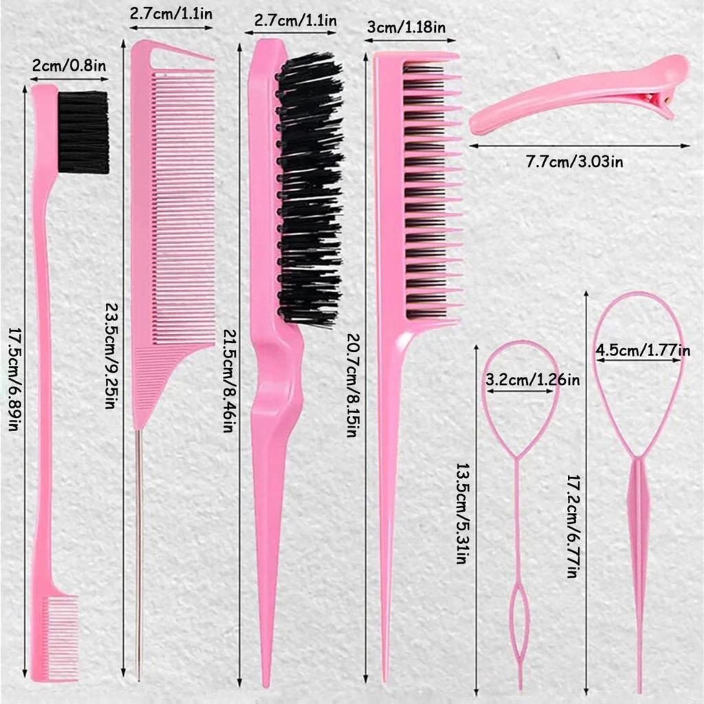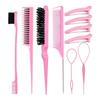 10pcs/1set Hairdressing Tools Pointed Tail Comb Dual Head Eyebrow Brush Triple Row Comb Coiler Hair Salon Styling Comb
