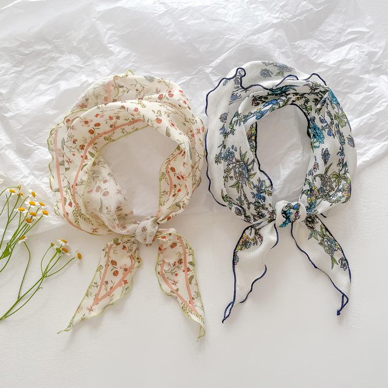 New Korean Version Of Fresh Floral Women's Decorative Triangle Scarf Silk French Countryside Fashion Ins Printed