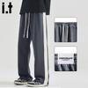 Men's Spliced Striped Straight Leg Casual Sweatpants