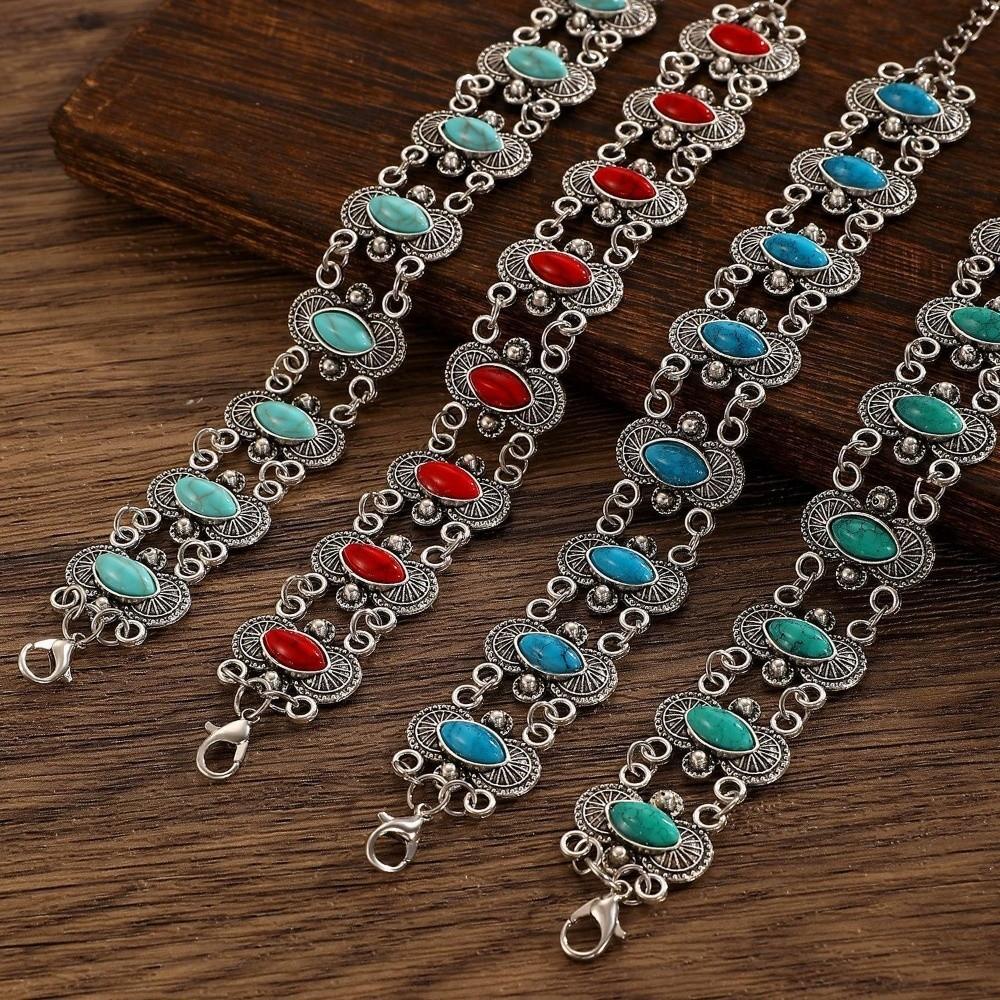 Ethnic Style Turquoise Bracelet Western Country Style Bohemian Bangles Wide Bangle Women