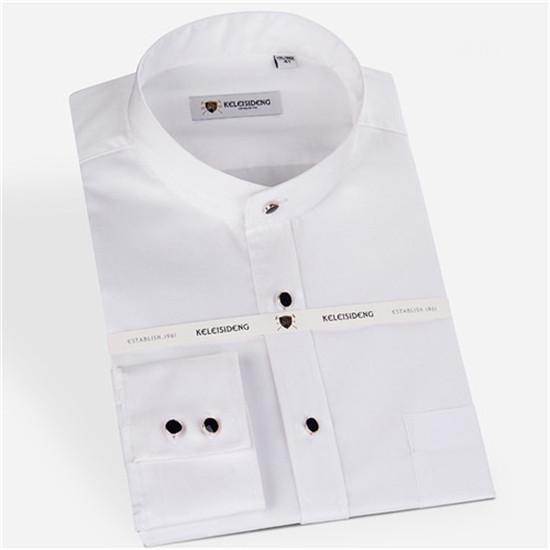 Saf Pamuk Beyaz Erkek Dik Yaka Uzun Kollu Resmi Gömlek Regular Fit