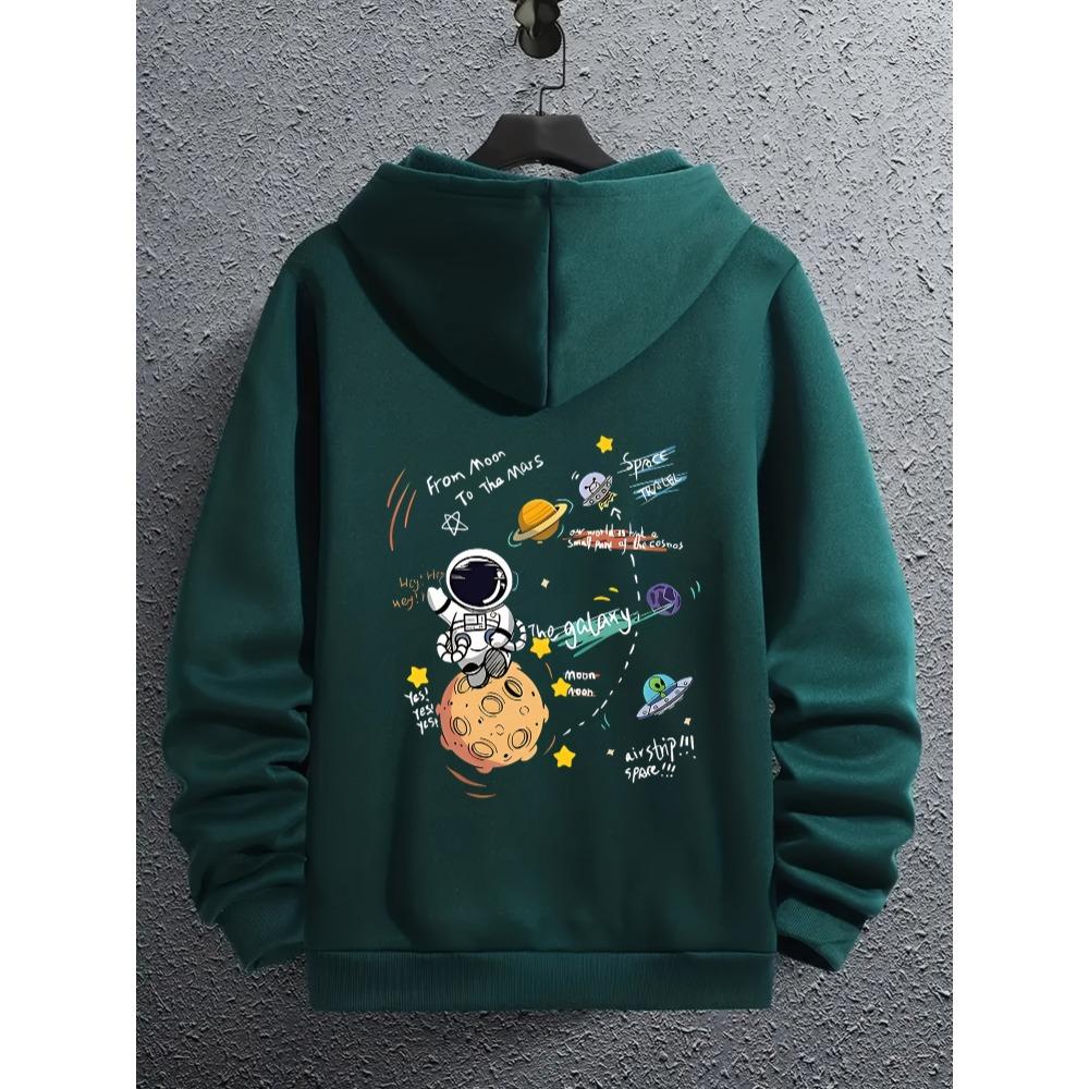 Men's Zipper Jacket with Cute Astronaut Print, Casual Hooded Top, Suitable for All Seasons, Perfect for Holiday Gatherings and Birthday Parties