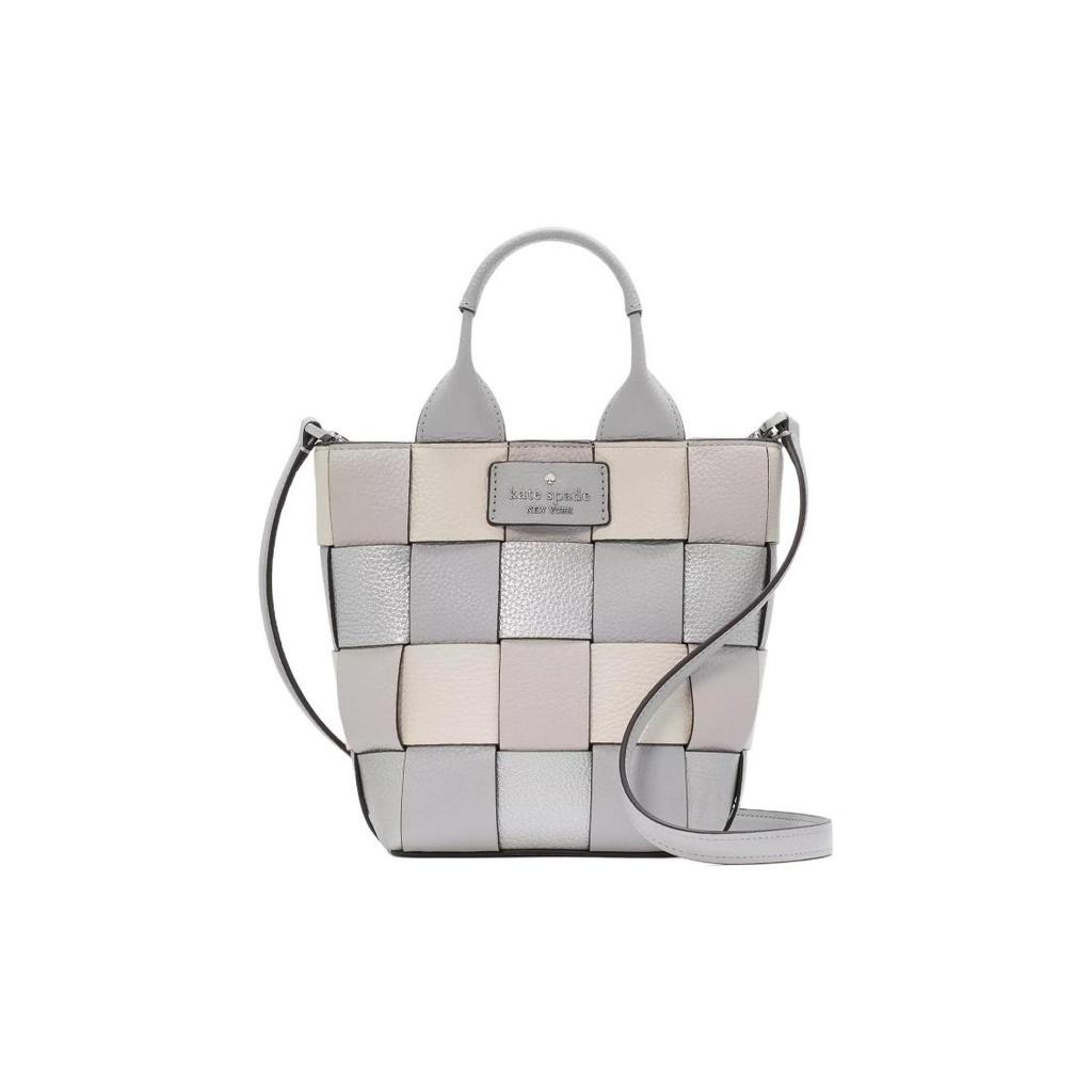 kate spade Basket Logo Magnetic Snap Closure Grain Leather Tote Bag Shopping Tote Shoulder Bag Mini Women's Platinum Gray