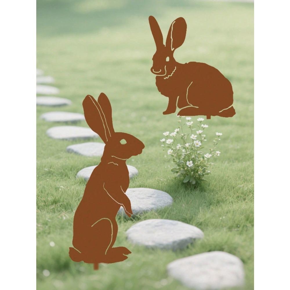 Metal Rabbit Garden Sculpture Outdoor Lawn Art Decor for Yard Patio Flower Beds Easter Halloween Christmas Ornament