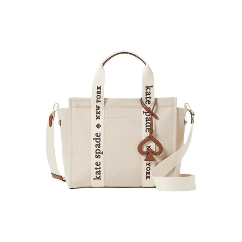 Kate Spade PLENTY Detachable Strap Letter Print Fabric Tote Bag Shopping Tote Shoulder Handbag Small Women's Natural