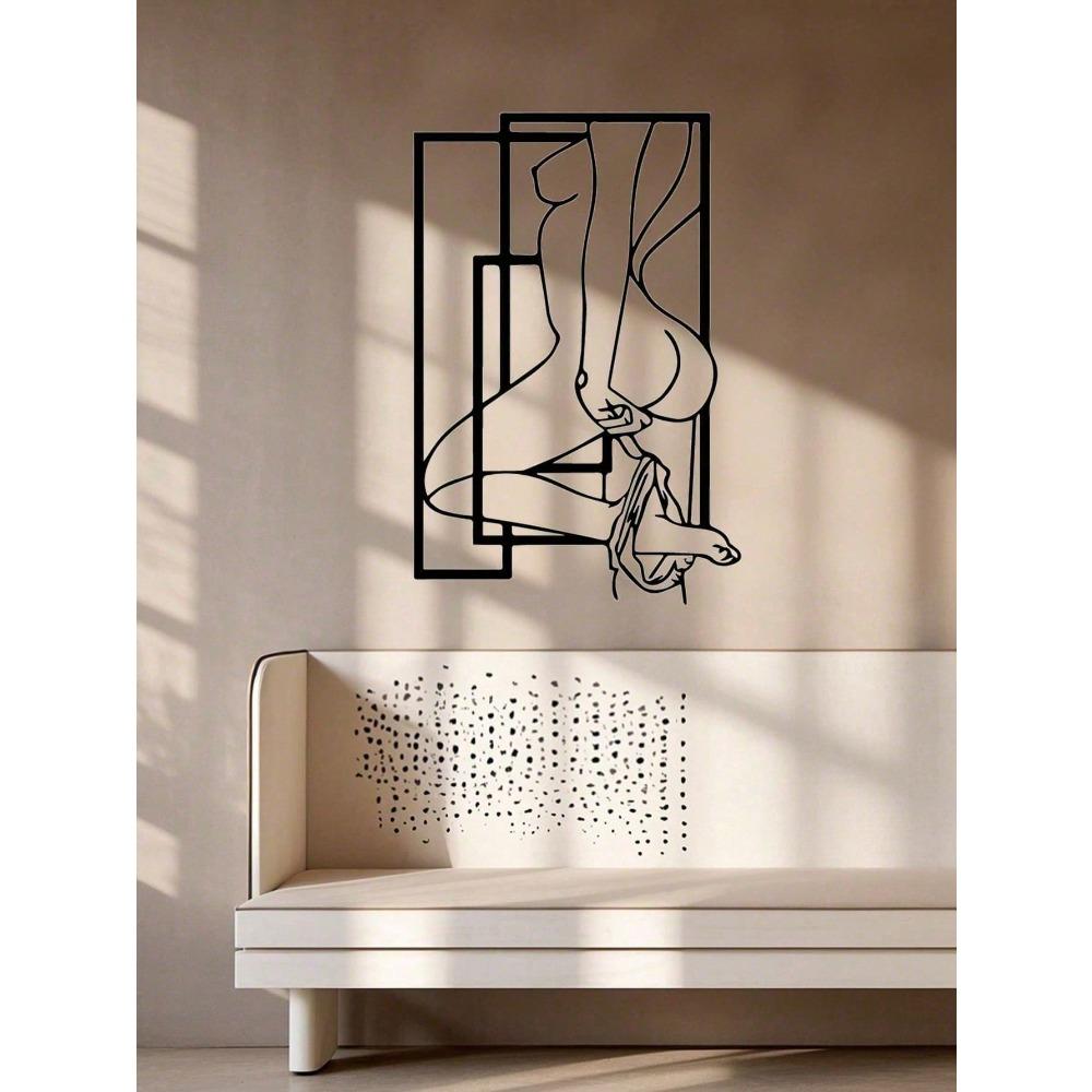 1 Piece Floating Female Line Metal Wall Art, Minimalist Gallery Sculpture for Bathroom Bedroom, Brushed Steel Material, Modern Home Decor