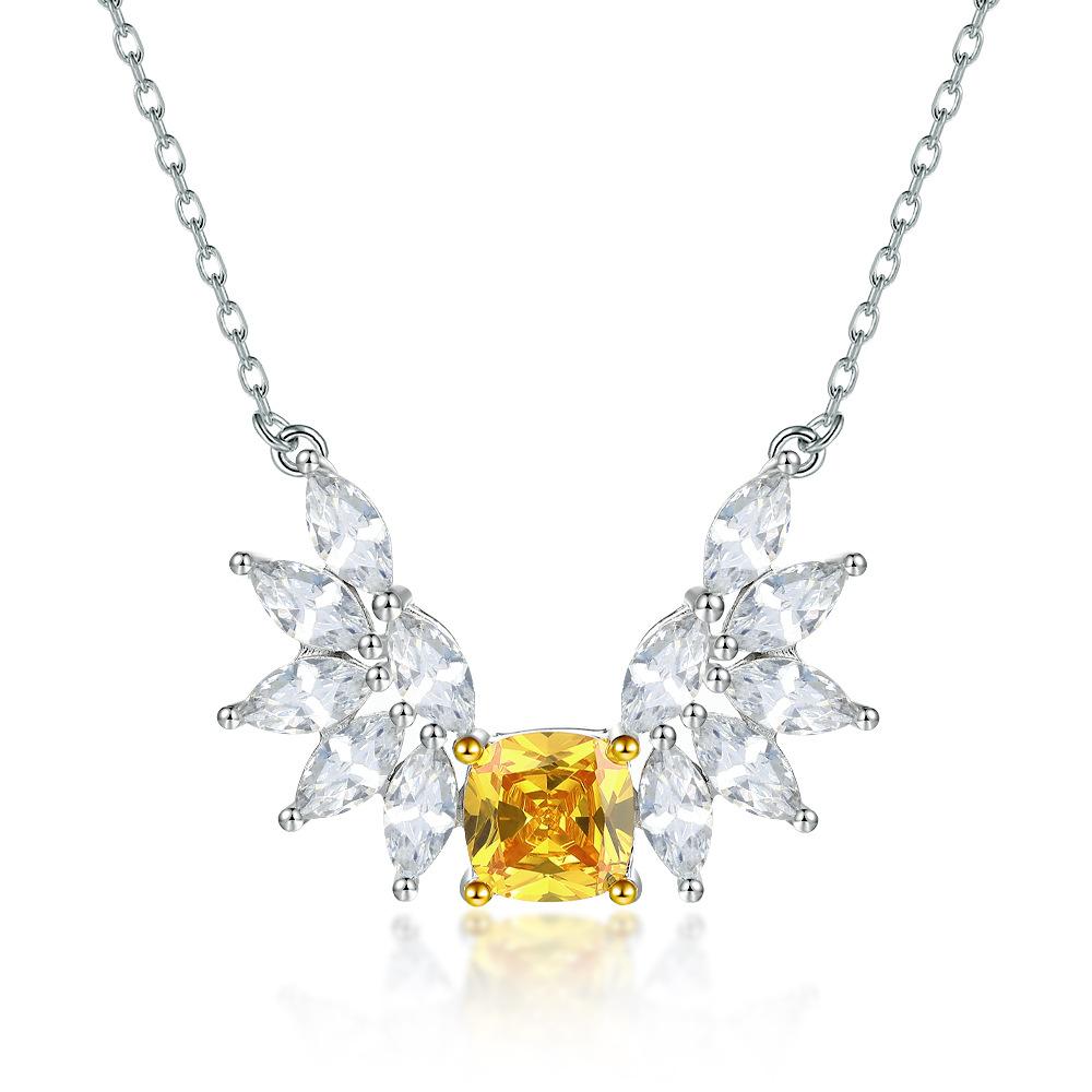 S925 silver natural stone angel wing necklace female niche high-end yellow zircon gemstone pendant sterling silver collarbone chain