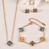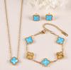 3PCS clover necklace bracelet earrings 18K gold-plated non fading light luxury fashion accessory