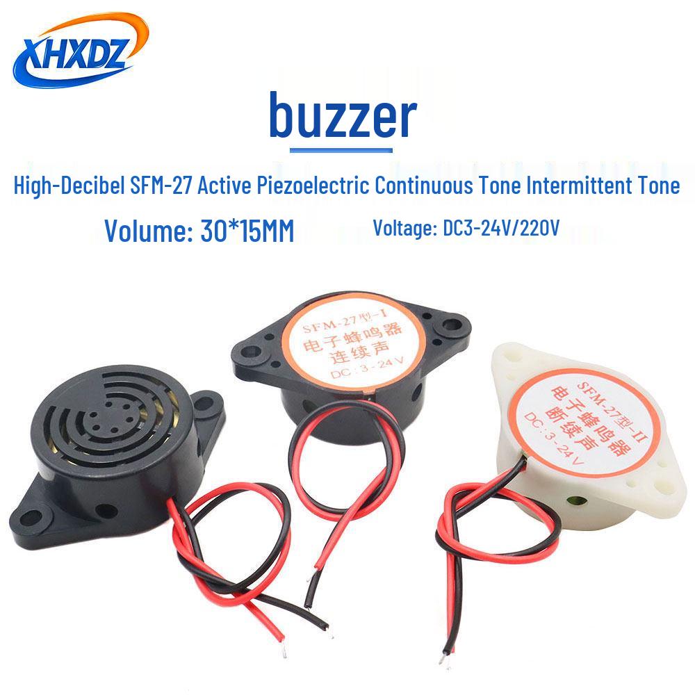 Yüksek Desibel SFM-27 Aktif Buzzer, 3-24V, Sürekli/Kesintili Alarm Seslendirici, 220V.