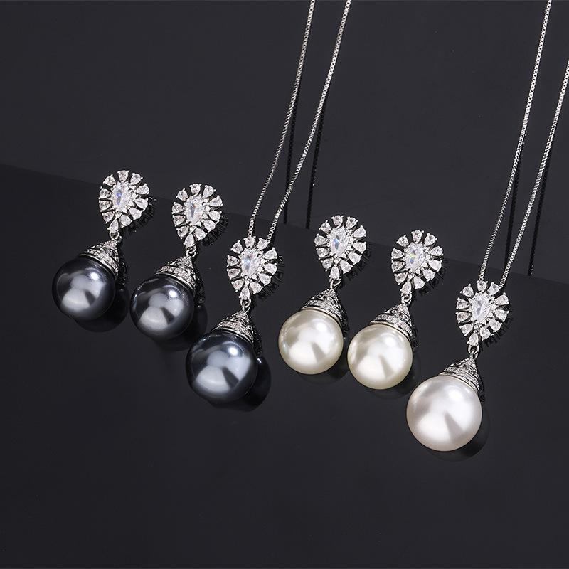 New Huabi Jewelry Copper Bottom Gold Plated Fritillary Pearl Fashion Retro Set 16mm14mm