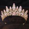 Gold Color Champagne Royal Queen Rhinestone Wedding Crown for Women Crystal Banquet Tiara Party Costume Hair Jewelry Accessories