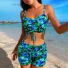 Women Floral Print Ruffle Sleeve Swimdress Side Bow Decor One Piece Swimsuit