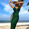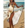 Women's Rainbow Pom Pom Trim Cover Up Dress Black Wrap Mermaid Beach Dress