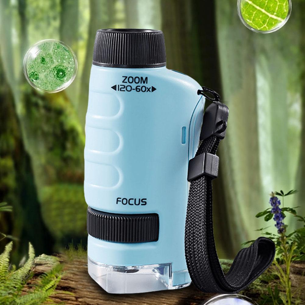 Mini Microscope 60x-120x Magnification Pocket Microscope Educational LED Lighted Microscope for Learning and Exploring