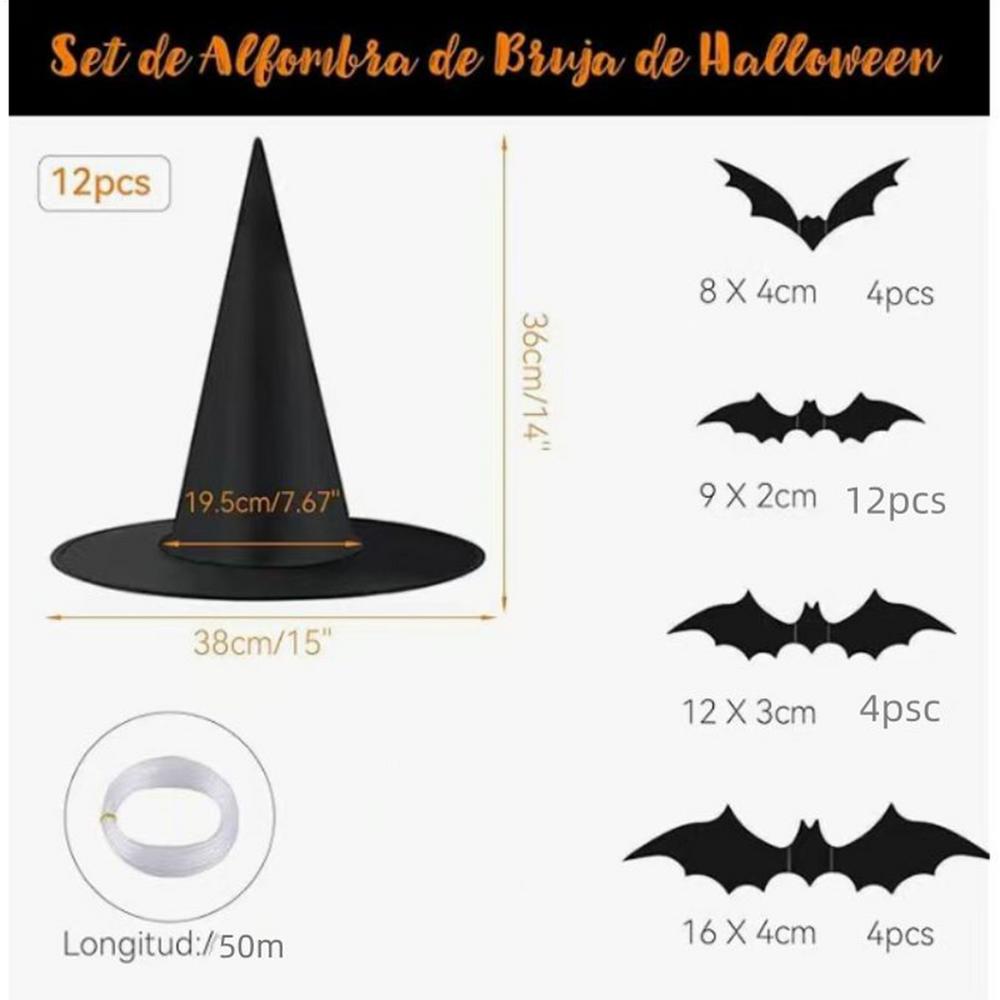 Halloween Witches Hat 12 Pieces Spooky Halloween Decorations With Bats Witch Hat Set With 164Ft Nylon Cord For Indoor Outdoor