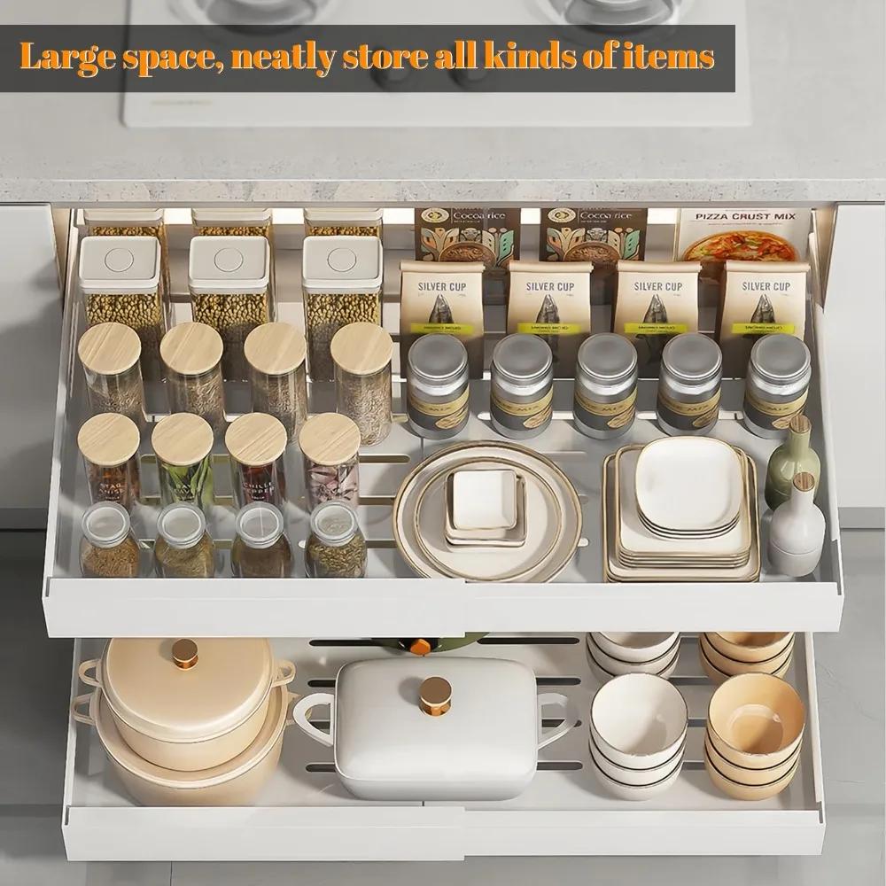 Pull Out Tray Organizer Kitchen Storage Rack Cabinet Expandable Under Sink Spice Boxes Silent Slide Drawer Style Bowl Dish Shelf