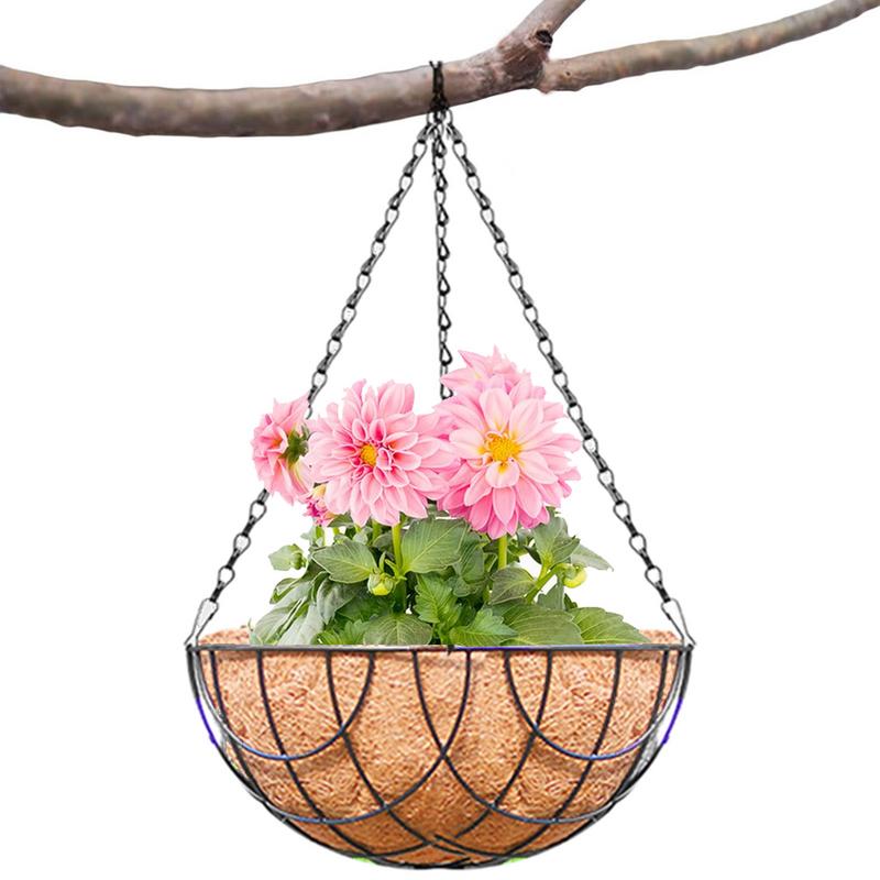 Hanging Planter Basket Metal Wire Plant Holder with Coconut for Porch Pot Hanger Garden Indoor Outdoor Plant Flower Pot Decor