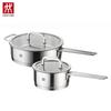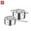 A versatile ZWILLING Nova III shallow soup pot, made from durable 304 stainless steel with a composite bottom. Suitable for various cooktops including gas, induction, ceramic, and alcohol stoves. Ideal for stewing, steaming, and braising.
