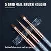 This nail brush holder is designed to keep your manicure tools organized and easily accessible. Featuring five slots, it can hold up to five nail brushes simultaneously, elevating them above the work surface to prevent smudging and enhance convenience.