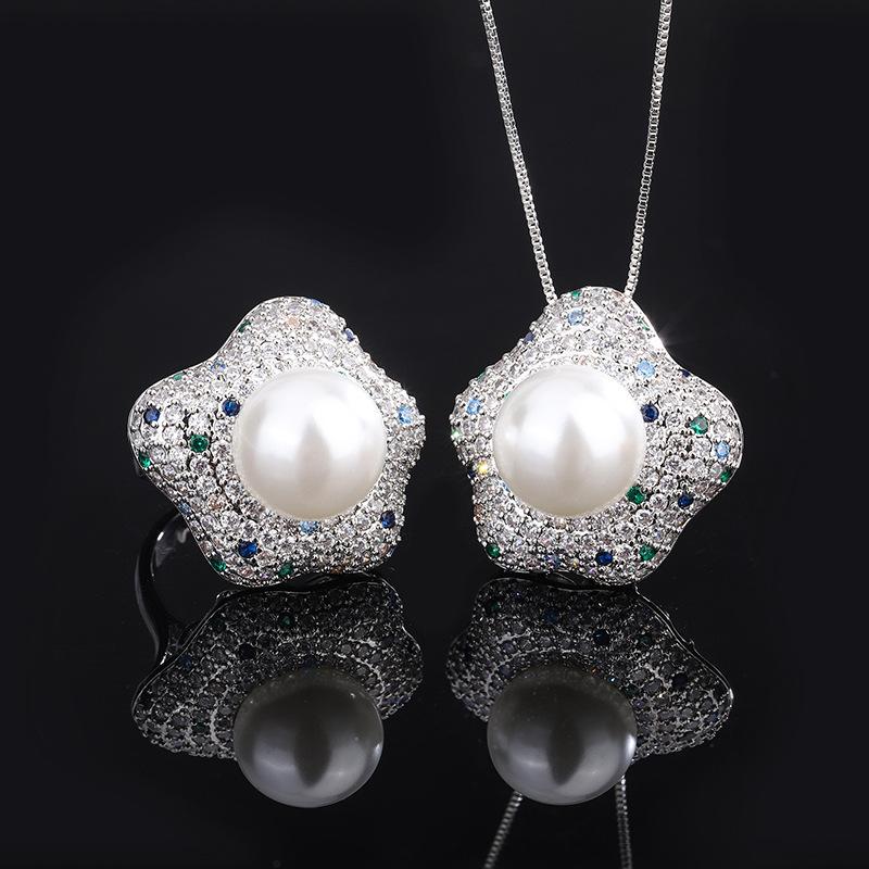 New European and American retro inlaid Austrian fritillary pearl inlaid with colored diamonds creative women's suit 14mm