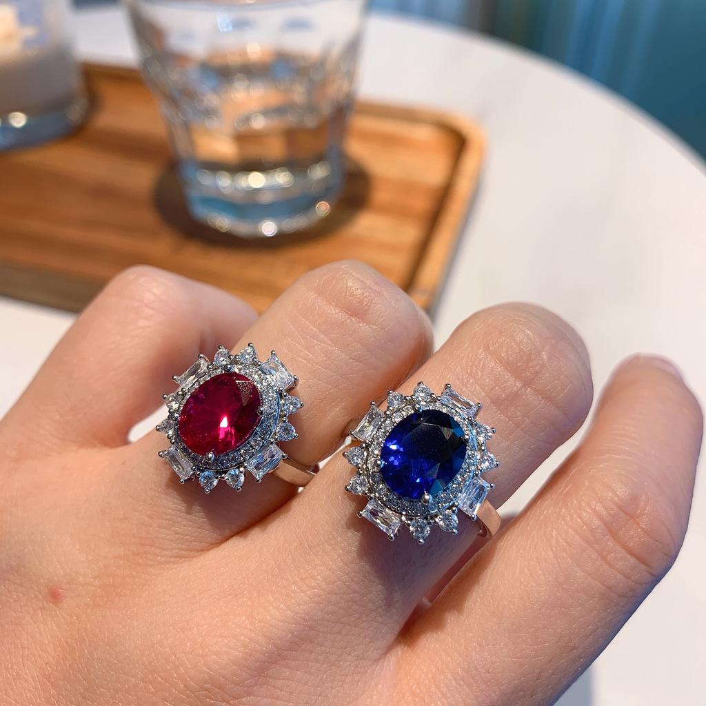 Color treasure model European and American imitation pigeon blood red treasure, Tanzania sapphire retro ring main stone 8 * 10