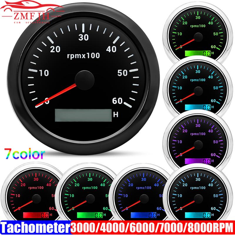 3000/4000/6000/7000/8000 RPM 85mm Tachometer with 7 Color Backlight for 1-10 Cylinder Petrol Diesel Car Boat Tacho Gauge