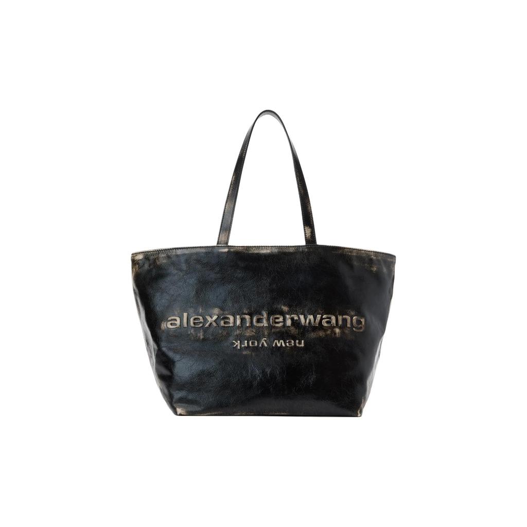 Alexander Wang Brand Logo Zipper Closure Cowhide Leather Tote Bag Shopping Tote Handbag Large Size Women's Style Vintage Color