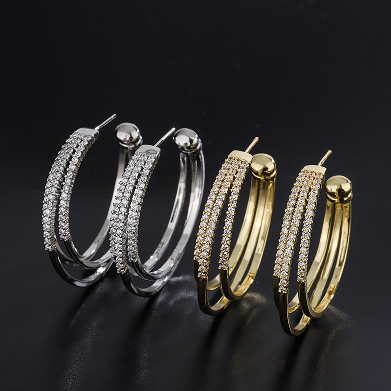 Big earrings European and American big circle full of diamonds earrings female Internet celebrities exaggerated geometric earrings versatile