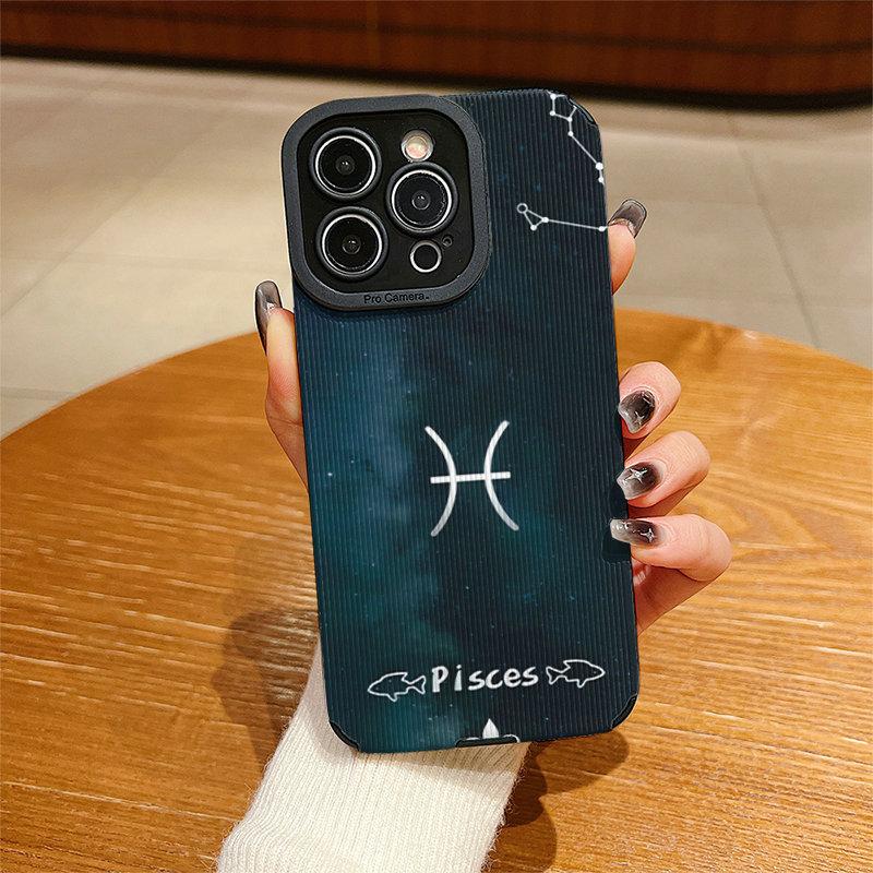 Vertical Leather Shell Pisces Printed Patterned Shockproof Soft Silicone Case with Camera Lens Full Protection for IPhone Samsung