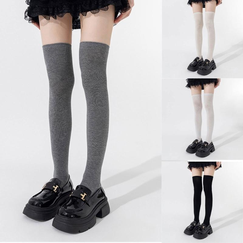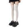 Women Solid Color Ribbed Cuffs Thigh High Stockings Japanese Preppy Students Stretchy Over The Knee Long Boot Socks