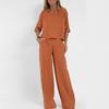 Summer Women Casual Loose-Fitting Solid Color Short-Sleeve Shirt + Cotton-Linen Pants Set