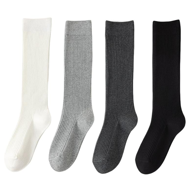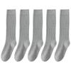 5 Pairs Women Rib Knitted Cotton Over The Calf Socks with Thick Double Stitching Classical Solid Color Knee Length Socks