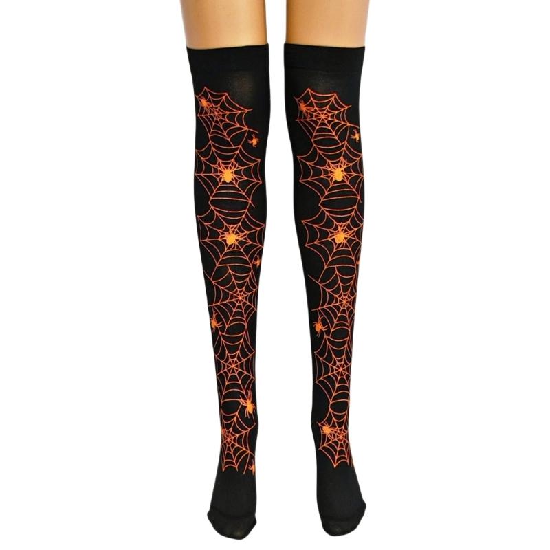 Women Sexy Harajuku Gothic Spiderweb Pattern Over Knee Socks Stretchy Thigh High Stockings for Halloween Cosplay Costume