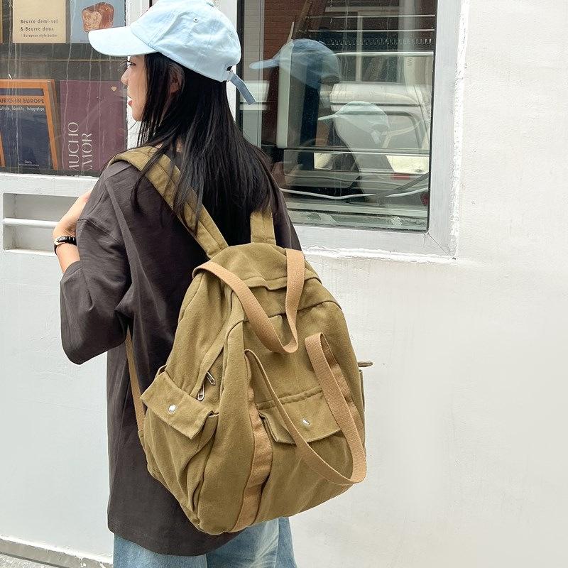 New canvas schoolbag, male and female college students, junior high school backpack, portable washed leisure travel backpack