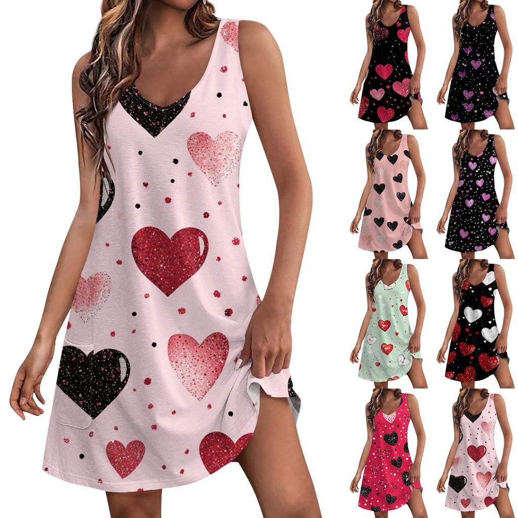 Women's Casual Fashion Valentine's Day Love Heart Printed Dress With Pockets