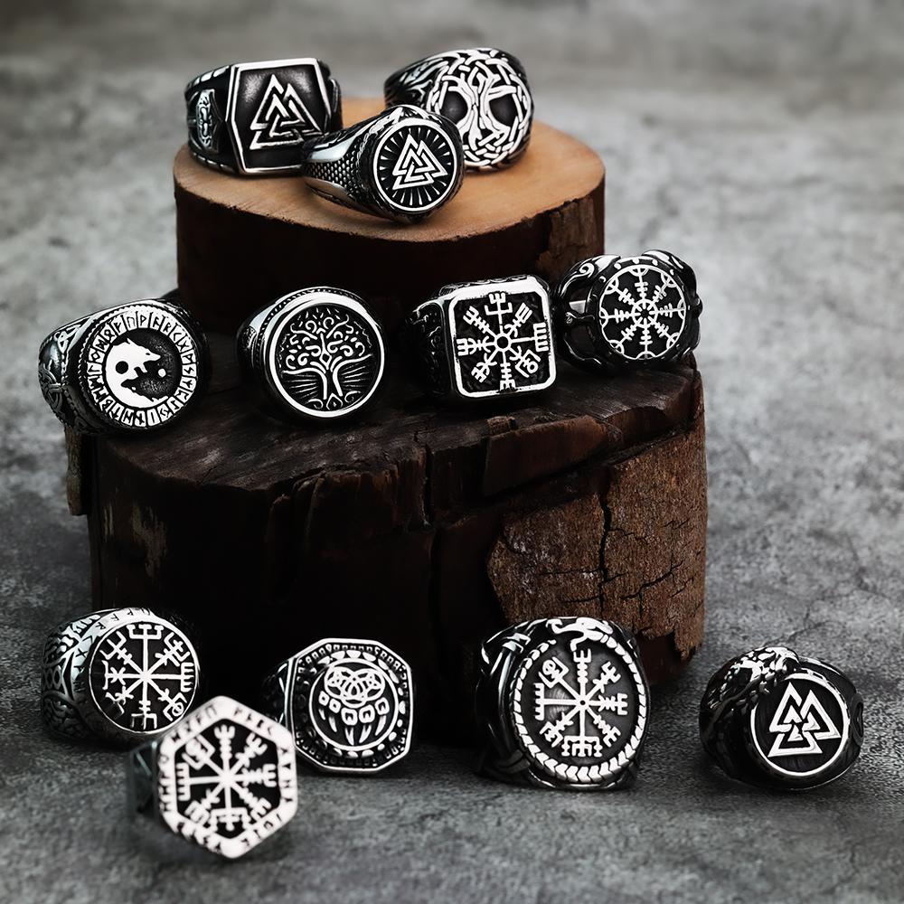 Iskandinav Viking Paslanmaz Çelik Yüzük Çapa Pusula Hayat Ağacı Rune Muska Kurt Erkek Kadın Parmak Takı Biker Parti Kulübü Hediye