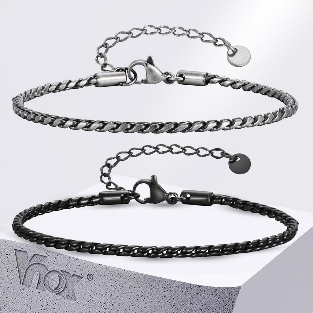 Vnox Slim 2.5mm Snake Links Bracelets for Men Teens Boys,Adjustable Stainless Steel Twisted Chain Bracelets,Simple Metal Jewelry