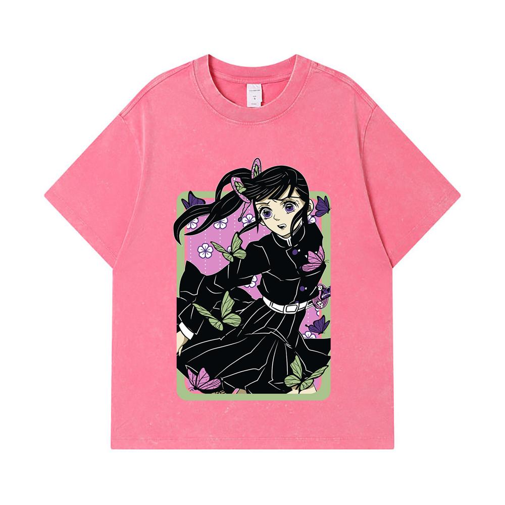 275 GSM Washed T-shirts 100% Cotton Demon Slayer V77 Kanao Print Unisex Heavy Cotton T Shirt