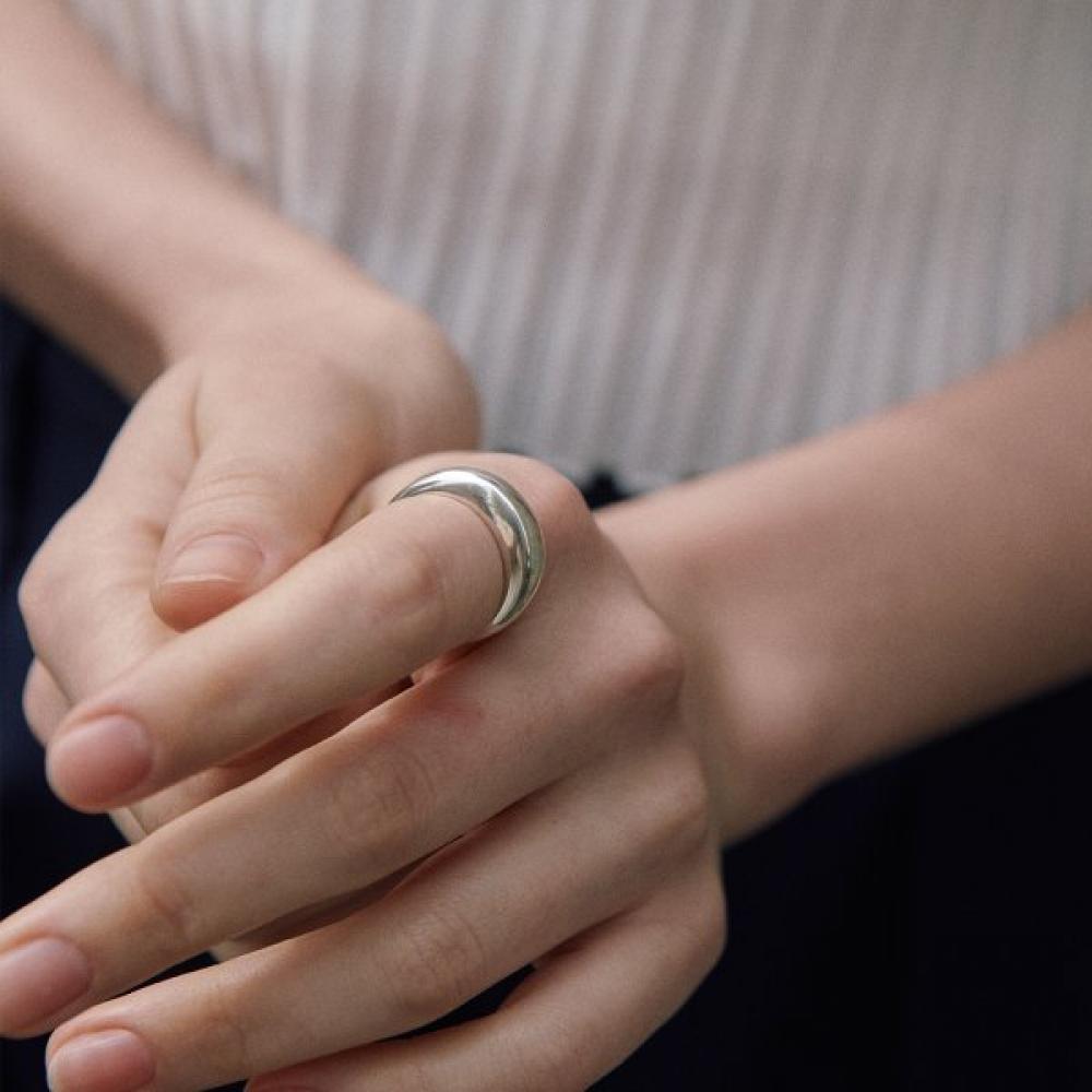 [925 silver] Cinq.silver.206 Fin Soar Ring is highlighted by its simple yet bold design, available in three thickness options to suit your preferences. The middle design offers a blend of simplicity and boldness for easy wear, while the thick dome detail wraps around your finger, adding a modern touch. It is recommended for solo wear as well as layering with various other rings.