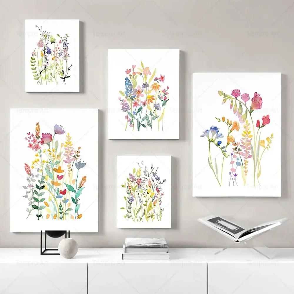Sulu Boya Kır Çiçeği Posteri Renkli Çiçek Baskıları Bitki Duvar Sanatı Tuval Tablo Oturma Odası Dekorasyonu için Duvar Resimleri