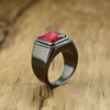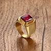Black/Gold Plated Stainless Steel Men's Ring Square Red Zircon Stone Classic Signet Rings
