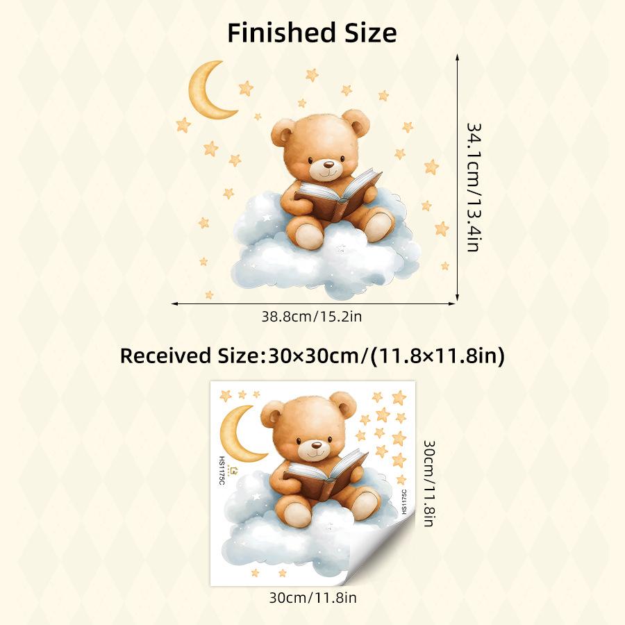 Cute Cartoon Teddy Bear with Clouds Stars Moon Wall Stickers, Self-Adhesive Decor for Kids Room Bedroom Decoration