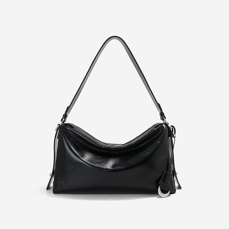 Large capacity, pillow bag, women's first layer cowhide underarm bag, genuine leather niche commuter single shoulder messenger tote bag