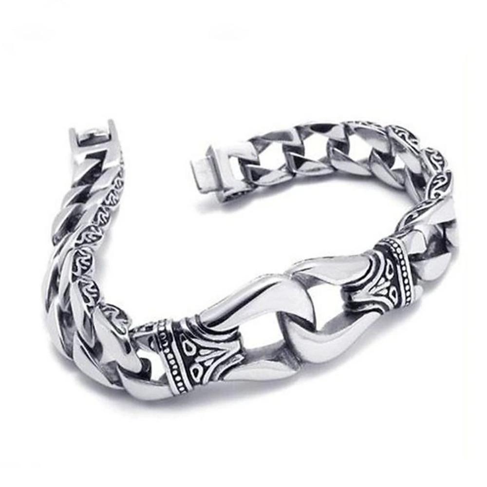 Punk Rock Stainless Steel Charm Bracelet for Men Viking Dragon Cuban Curb Chain Wrist Jewelry