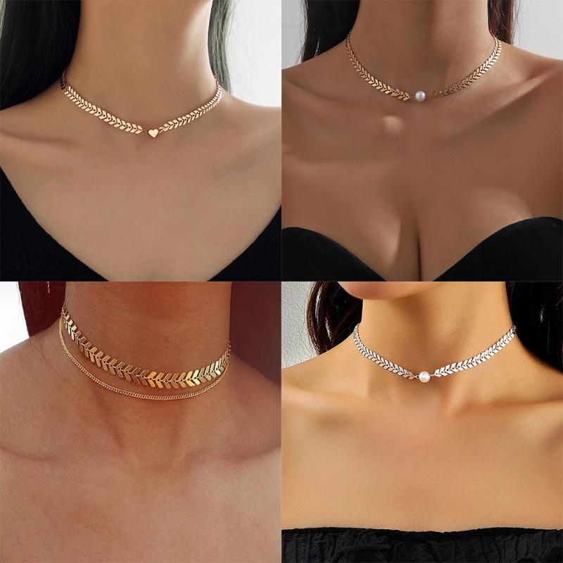 New Beads Women'S Neck Chain Pearl Choker Necklace Gold Color Goth Chocker Jewelry On The Neck Pendant