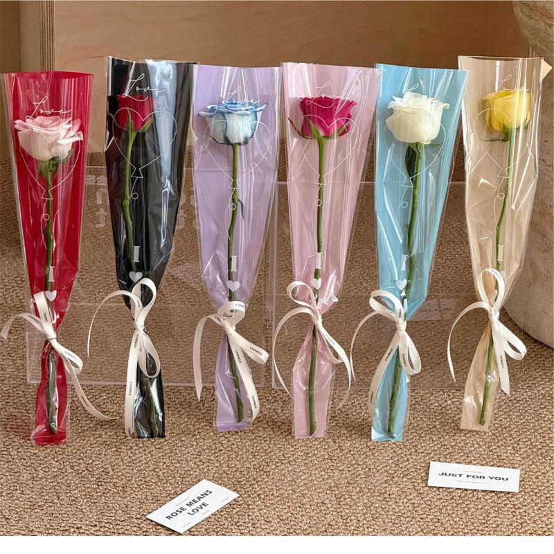 50 Adet Tek Gül Kol Çiçek Paketleme Çantası Buket Paketleme Çantaları Sevgililer Günü İçin Şeffaf Selofan Çiçek Paketleme Çantaları