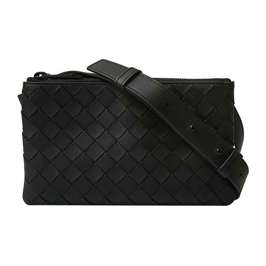 Bottega Veneta Street Style Solid Color Woven Zipper Mini Messenger Bag Men bags Black 609692VCPQ18984