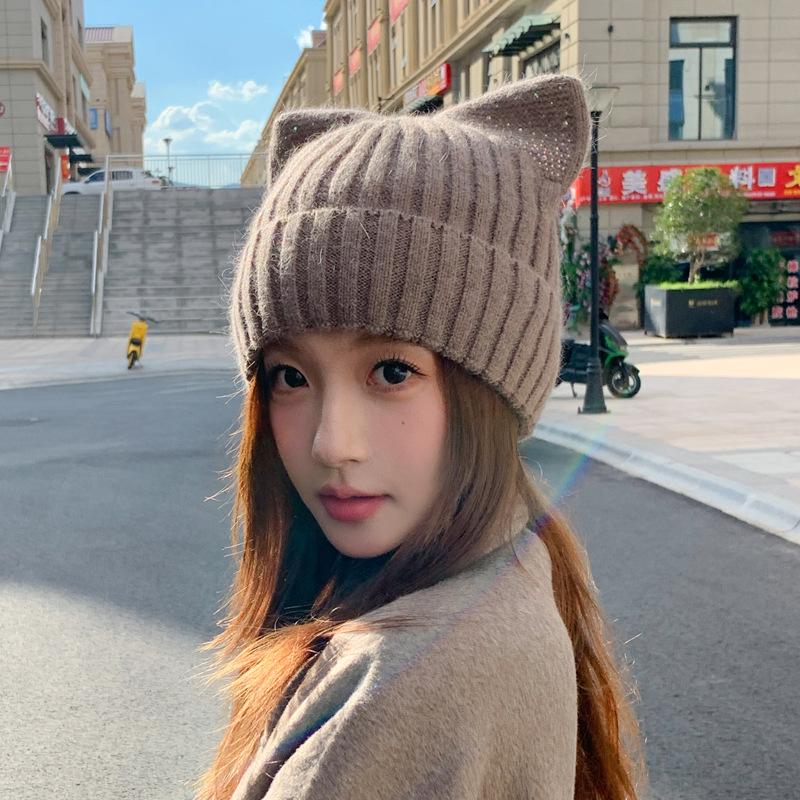 New wool hat cat ears ear protection autumn and winter warm cold hat men's and women's cute knitted hat