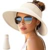 Geniş Kenarlı Kadın Güneş Şapkaları, Plaj İçin Rulo Tasarım, At Kuyruğu Dostu, Seyahat İçin Paklanabilir ve Katlanabilir Hasır Vizör