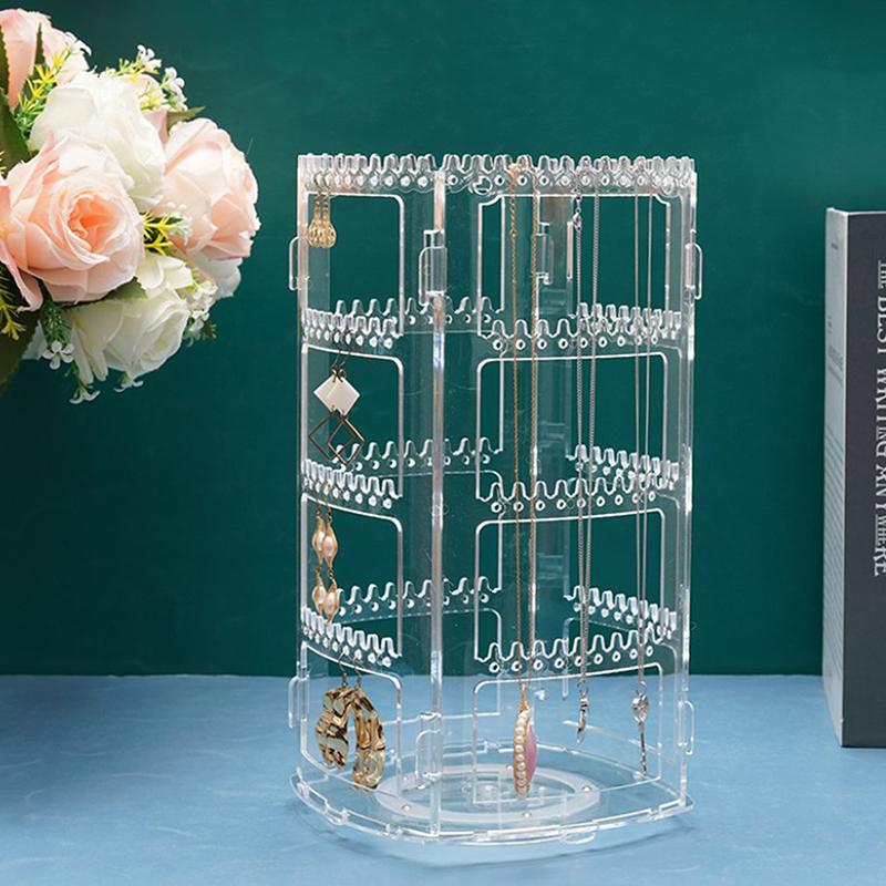 360 Derece Dönen Takı Saklama Kutusu Küpe Sergileme Standı Plastik Küpe Düzenleyici Tutucu Vitrin Takı Makyaj Kutusu
